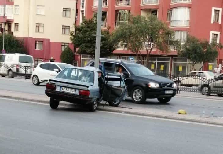 Konya’da refüjdeki direğe çarpan otomobildeki 3 kişi yaralandı. Yaralılardan birinin durumu ağır.