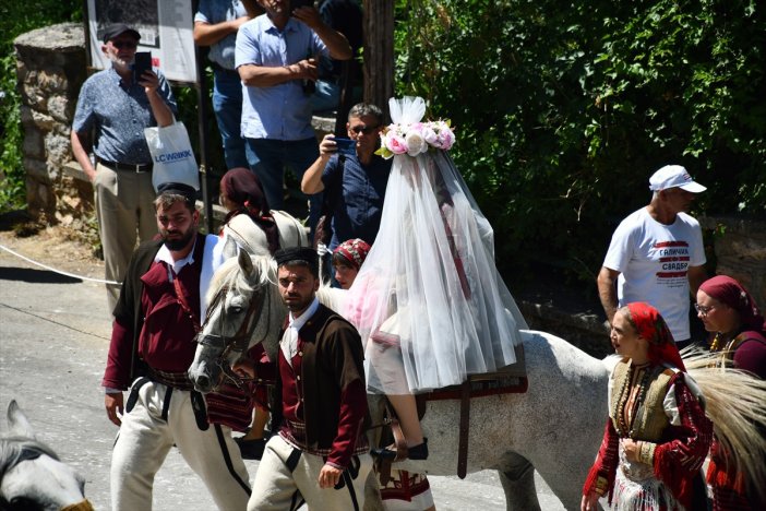 Kuzey Makedonya'nın farklı bölgelerinden ve yurt dışından gelen çok sayıda ziyaretçi, gelin ve damadın geleneksel adetlere göre evlendiği bu özel törene tanıklık etti.