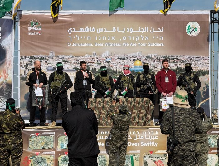 Esir takasının altıncı turunda, Hamas'ın silahlı kanadı İzzettin Kassam Tugayları, ABD Başkanı Donald Trump'ın Gazze'deki Filistinlileri zorla yerinden etme planına karşı mesaj verdi.