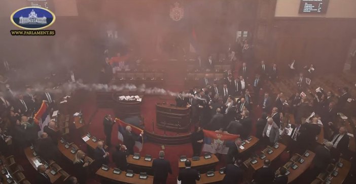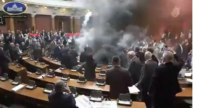 Sırbistan'da Meclis Başkanı Ana Brnabic'in yönettiği meclis, Başbakan Milos Vucevic'in istifası, yükseköğretim kanunu gibi konuların da bulunduğu 62 maddeyi görüşmek için toplandı. Gündem kabulünün ardından muhalefetteki Yeşil Sol Cephe milletvekillerinden Radomir Lazovic kürsüye yöneldi fakat parlamento güvenliğinin müdahalesiyle karşılaştı. Muhalefet ve iktidar milletvekillerinin de kürsünün olduğu bölgeye gelmesiyle arbede yaşandı.