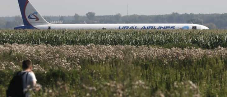Motorları zarar gören uçak Moskova Zhukovsky Uluslararası Havaalanı yakınlarındaki bir mısır tarlasına acil iniş yapmak zorunda kaldı.