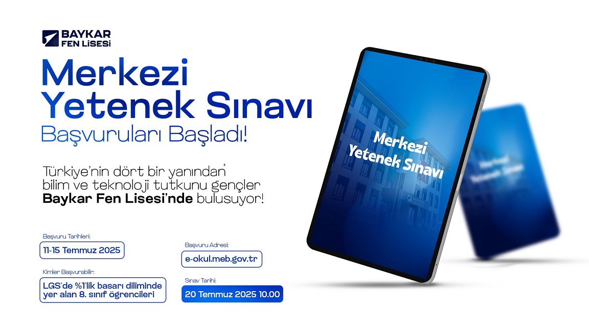 Baykar Fen Lisesi’ne başvurmak isteyen öğrencilerin, Liselere Geçiş Sınavı’nda (LGS) Türkiye genelinde ilk yüzde 1’lik dilime girmesi gerekiyor. Bu başarıyı elde eden öğrenciler, 20 Temmuz’da yapılacak Merkezi Yetenek Sınavına katılacak.