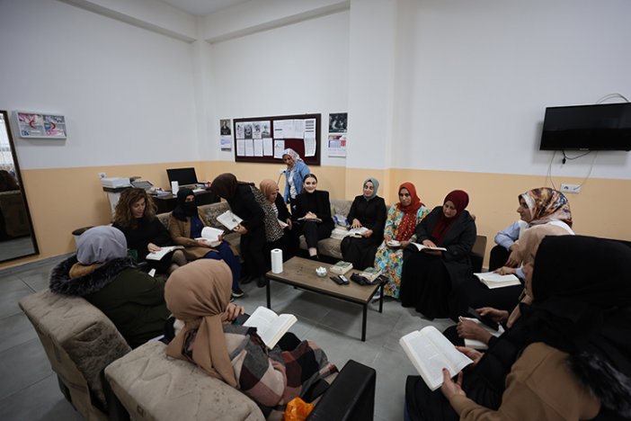 Köydeki Şehit Piyade Er Erdem Yüce İlkokulunda süren projeyle öğretmenler, kadınların kitaplarla buluşmalarına ve okuduktan sonra değerlendirmelerine rehberlik ediyor.