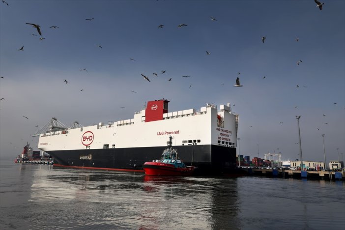 BYD'nin araç taşıma gemisi "BYD CHANGZHOU", 7 bin araçla Kocaeli'nin Derince ilçesindeki Safiport Limanı'na yanaştı.