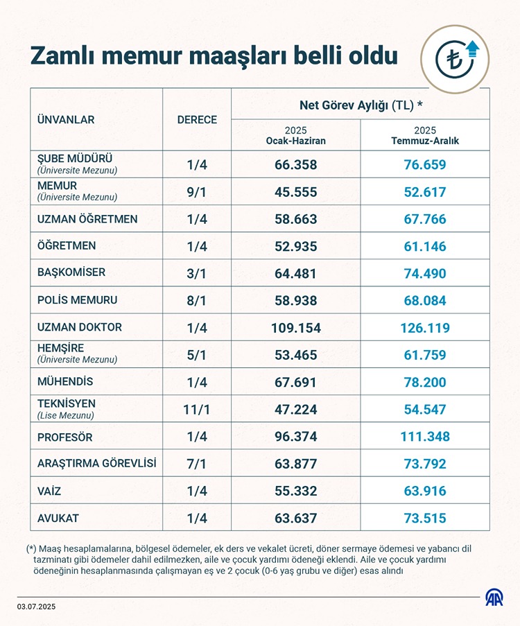 İşte kalem kalem 2025 Temmuz zamlı memur maaşları