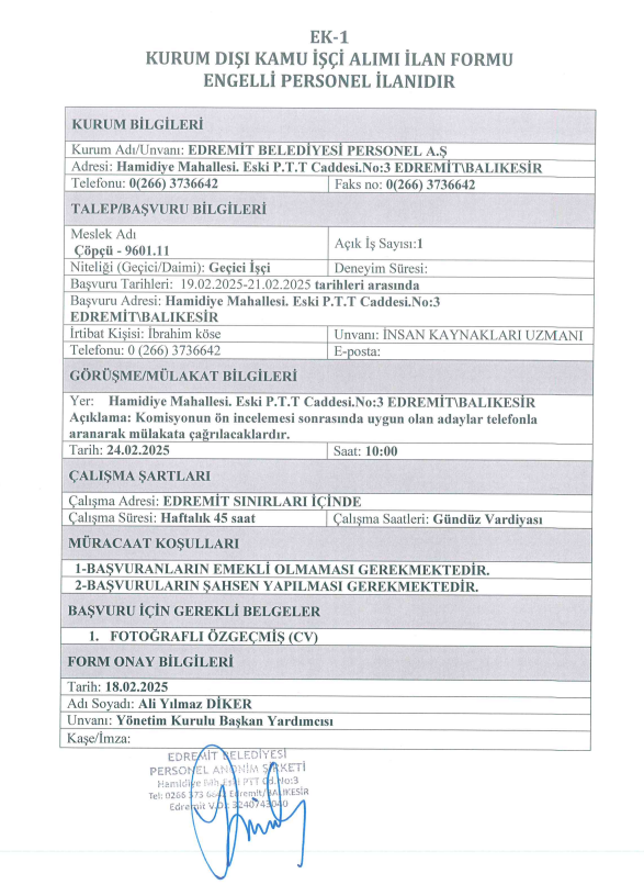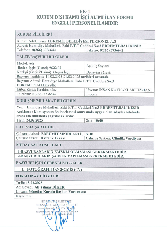 EDREMİT BELEDİYESİ İŞ BAŞVURUSU 2025