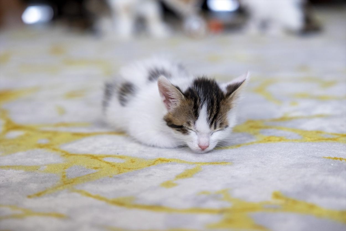 Mersin'de bir camide vaaz kürsüsünün altında doğum yaptıktan sonra sahiplendirilen anne kedinin 3 yavrusunun gelişimi sürüyor.