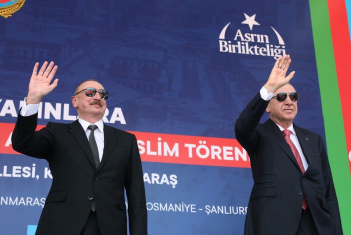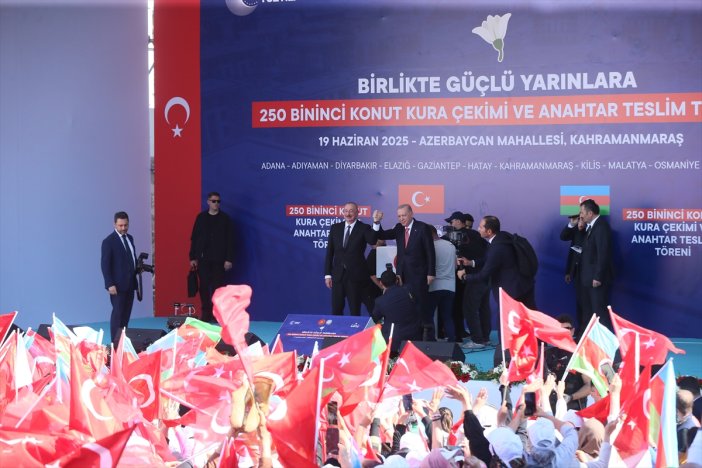 Cumhurbaşkanı Erdoğan, Azerbaycan Cumhurbaşkanı İlham Aliyev ile Kahramanmaraş'taki Azerbaycan Mahallesi'nde 250 Bininci Afet Konutu Anahtar Teslimi ve Kura Çekim Töreni'ne katıldı.