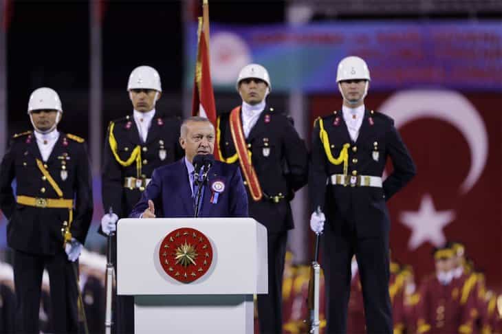 Jandarma ve Sahil Güvenlik Akademisi Subay ve Astsubay Mezuniyet Töreninde konuşan Cumhurbaşkanı Erdoğan, Diyarbakır, Van ve Mardin belediye başkanlarının görevden uzaklaştırmasıyla ilgili olarak, "Milletin parasını dağa gönderenlere seyirci kalmayacağız. Kim terörle el ele olursa milletin verdiği yetkiyi kullanırız. dedi.