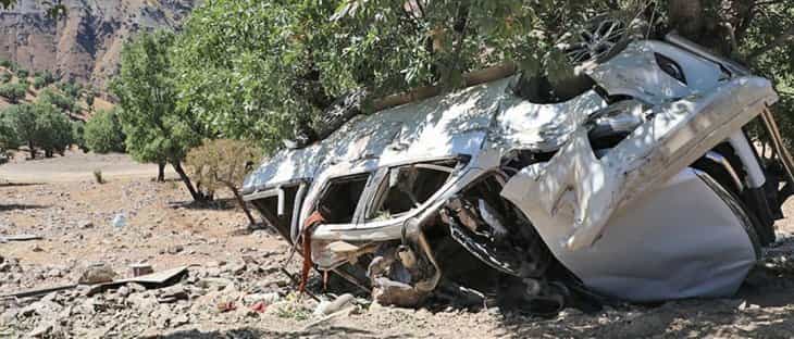 Patlamanın etkisi ile yolun karşı tarafına savrularak şarampole yuvarlanan pikabın ağaçlara takılarak durabildiği görüldü.
