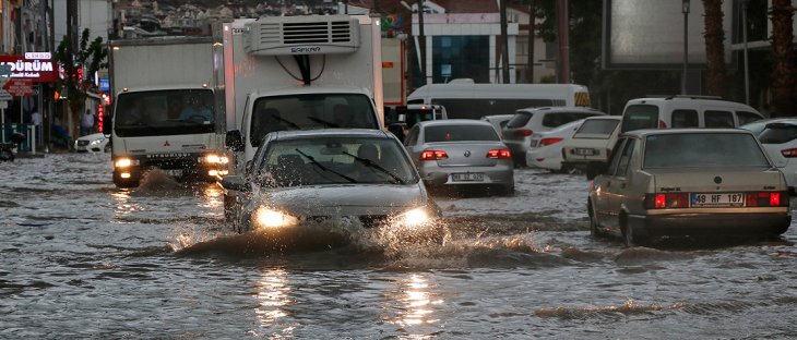 Suyla dolan yollarda kalan bazı araçlar ise trafikte aksamalara neden oldu.