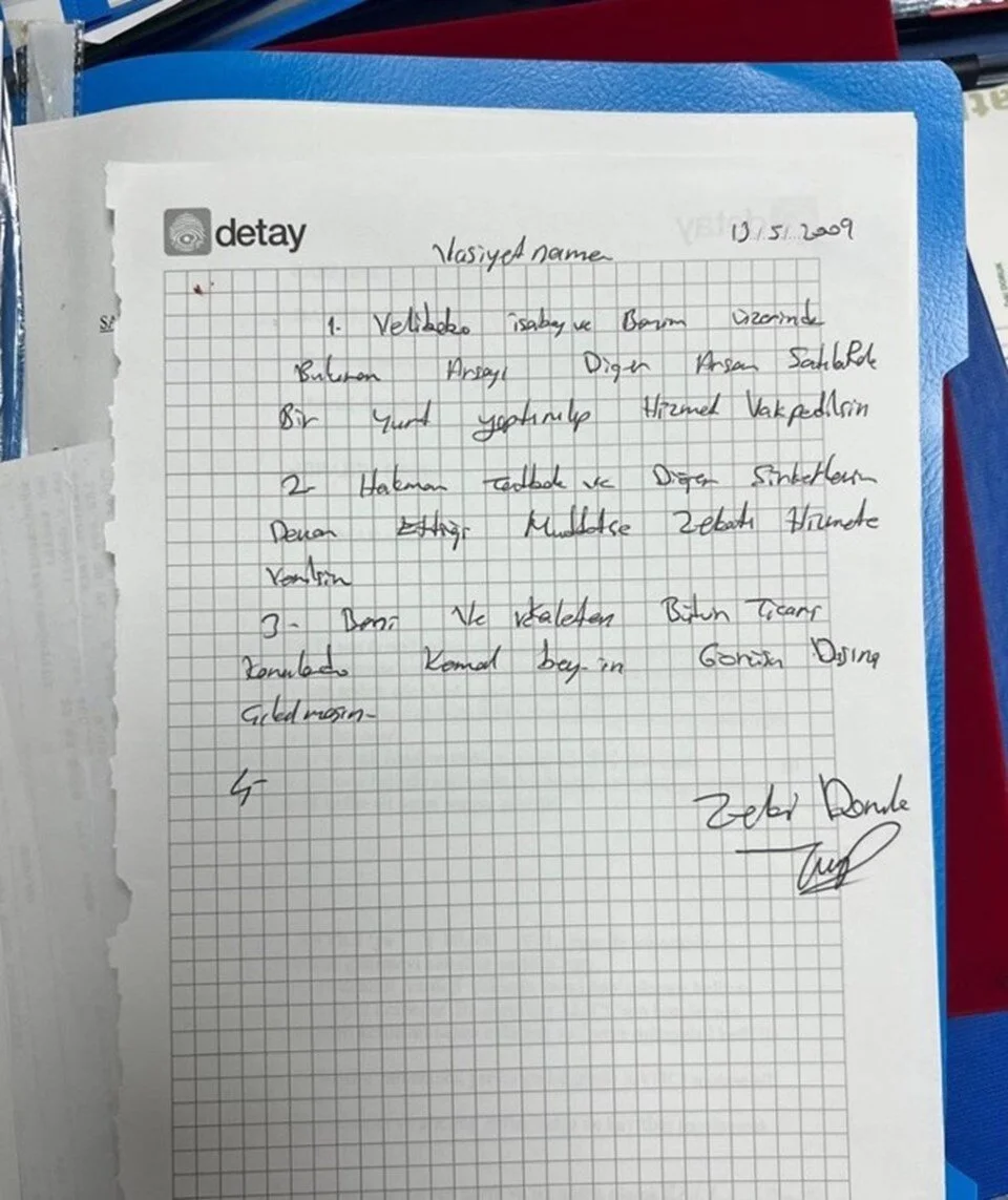 MİT, İstanbul Cumhuriyet Başsavcılığı ve İstanbul Mali Suçlarla Mücadele ekiplerinin FETÖ'nün finans yapılanmasına yönelik düzenlediği operasyonda yakalanan Zeki Doruk'un evindeki kasadan FETÖ’ye mal varlığını bıraktığını gösteren vasiyetname bulundu.