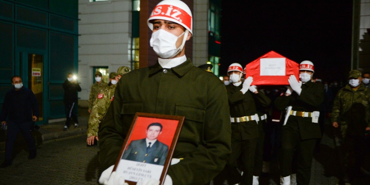 Sarı'nın Türk bayrağına sarılı tabutu, silah arkadaşlarının omuzlarında Necip Fazıl Şehir Hastanesi morguna götürüldü.
