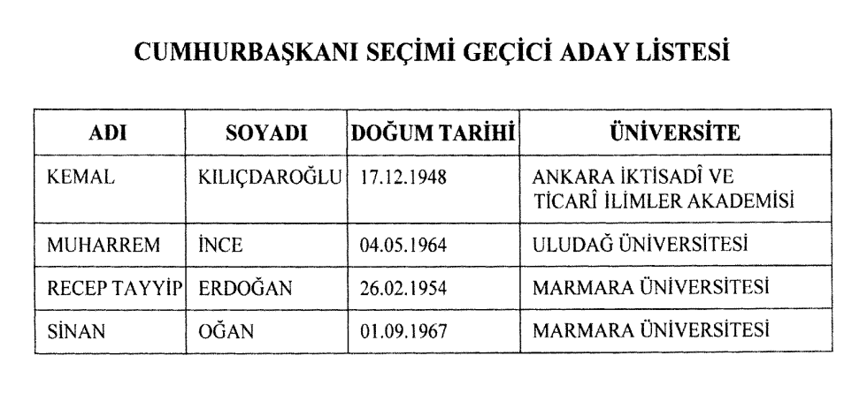 Son Dakika Haberi! Yüksek Seçim Kurulu’nun geçici aday listesi Resmi Gazete’de yayımlandı. İşte 4 adayın isminin yer aldığı liste.