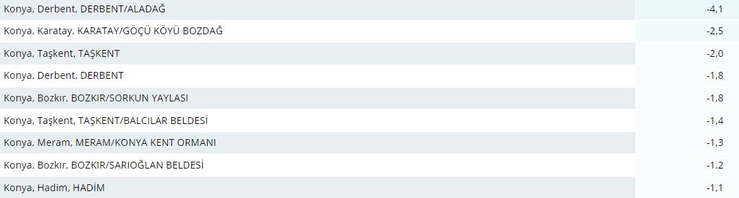 Diğer bazı ilçelerdeki sıcaklık değerleri ise şöyle oldu: