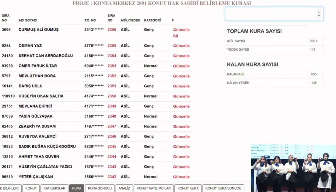 Konya merkez TOKİ kura çekimi sonucu tam isim listesi