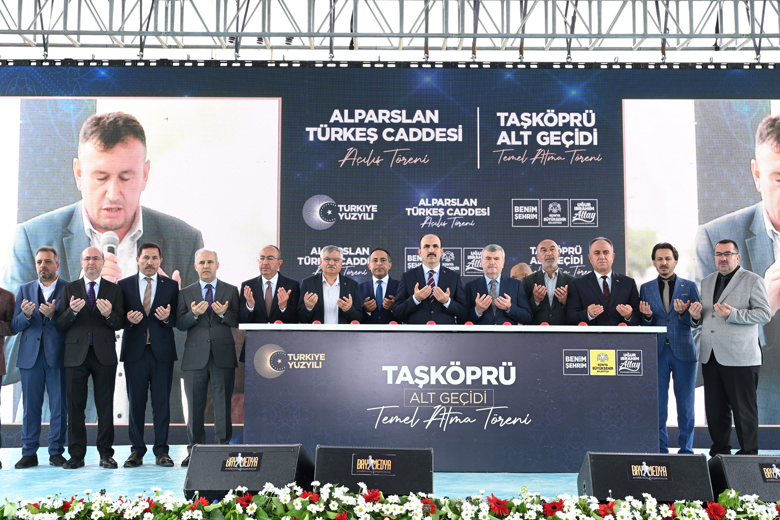 Konya Büyükşehir Belediyesi tarafından şehre kazandırılan Alparslan Türkeş Caddesi’nin açılışı ile Taşköprü Alt Geçidi’nin temel atma töreni gerçekleştirildi.