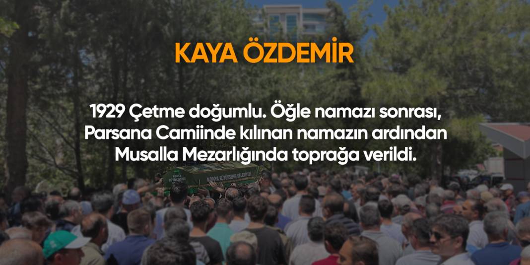Bugün Konya’da hayatını kaybeden 13 kişi toprağa verildi. İşte 14 Mayıs Çarşamba günü vefat edenler ve cenaze bilgileri.