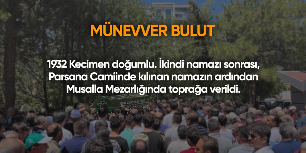 Bugün Konya’da hayatını kaybeden 13 kişi toprağa verildi. İşte 16 Mayıs Cuma günü vefat edenler ve cenaze bilgileri.
