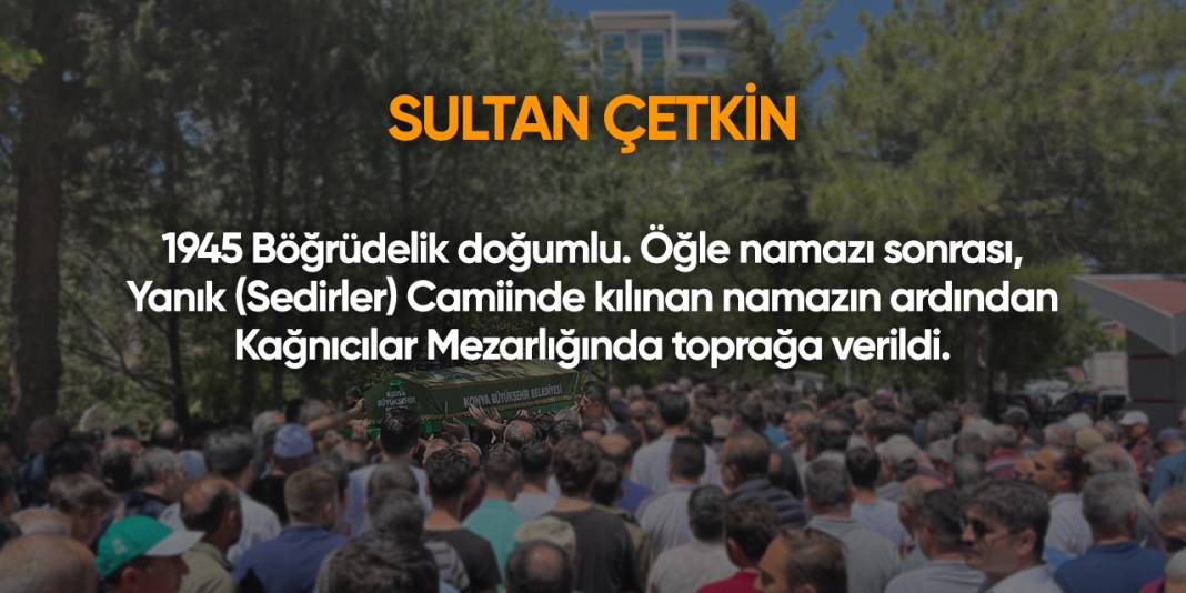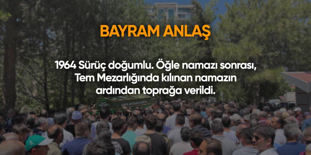 Bugün Konya’da hayatını kaybeden 13 kişi toprağa verildi. İşte 21 Nisan Pazartesi günü vefat edenler ve cenaze bilgileri.