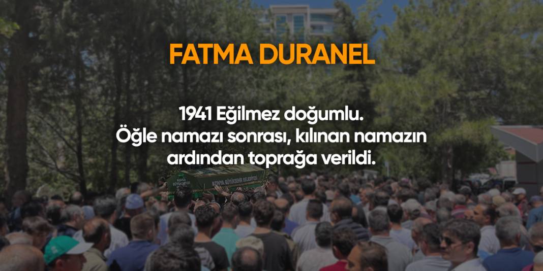 Bugün Konya’da hayatını kaybeden 16 kişi toprağa verildi. İşte 23 Haziran Pazartesi günü vefat edenler ve cenaze bilgileri.