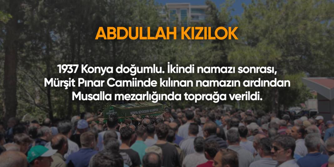 Abdullah Kızılok. 1937 Konya doğumlu. İkindi namazı sonrası, Mürşit Pınar Camiinde kılınan namazın ardından Musalla mezarlığında toprağa verildi.