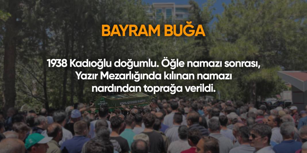 Bugün Konya’da hayatını kaybeden 15 kişi toprağa verildi. İşte 26 Temmuz Cumartesi günü vefat edenler ve cenaze bilgileri.