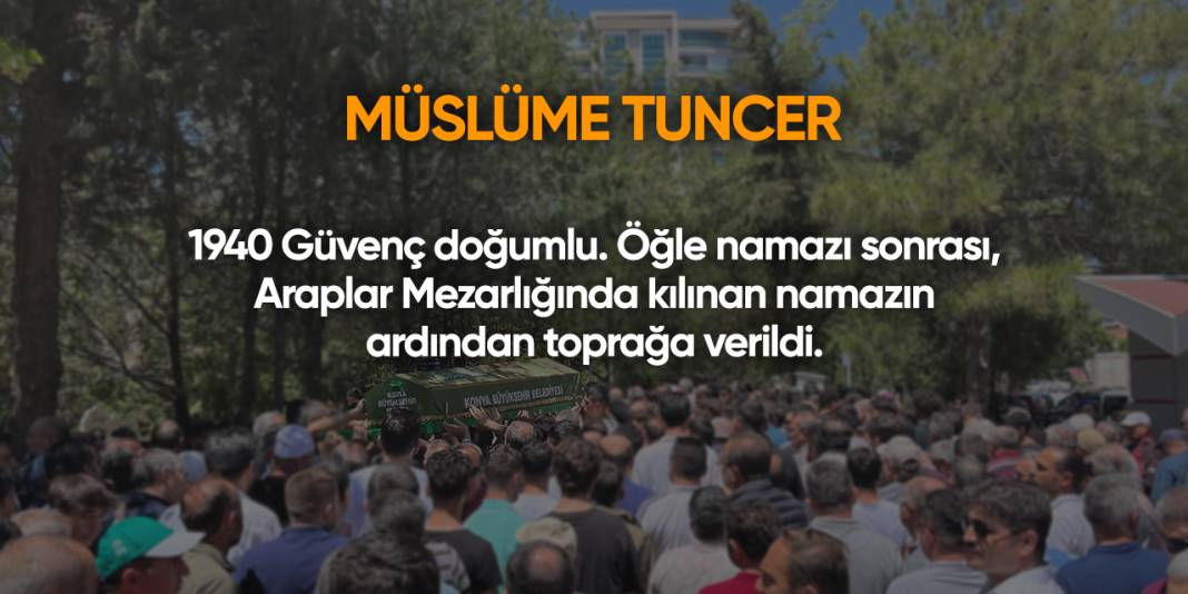 Bugün Konya’da hayatını kaybeden 12 kişi toprağa verildi. İşte 28 Temmuz Pazartesi günü vefat edenler ve cenaze bilgileri.