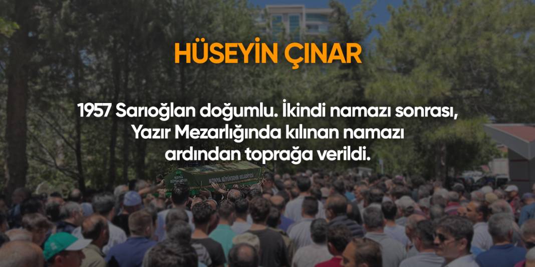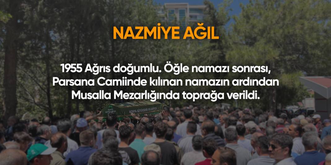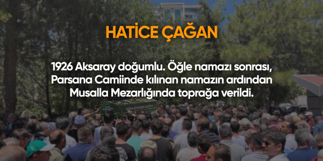 Bugün Konya’da hayatını kaybeden 7 kişi toprağa verildi. İşte 30 Haziran Pazartesi günü vefat edenler ve cenaze bilgileri.