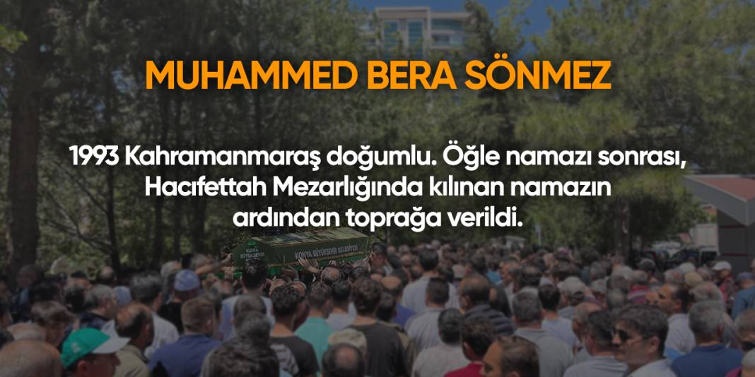 Muhammed Bera Sönmez. 1993 Kahramanmaraş doğumlu. Öğle namazı sonrası, Hacıfettah Mezarlığında kılınan namazın ardından toprağa verildi.