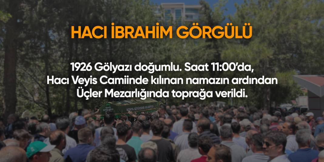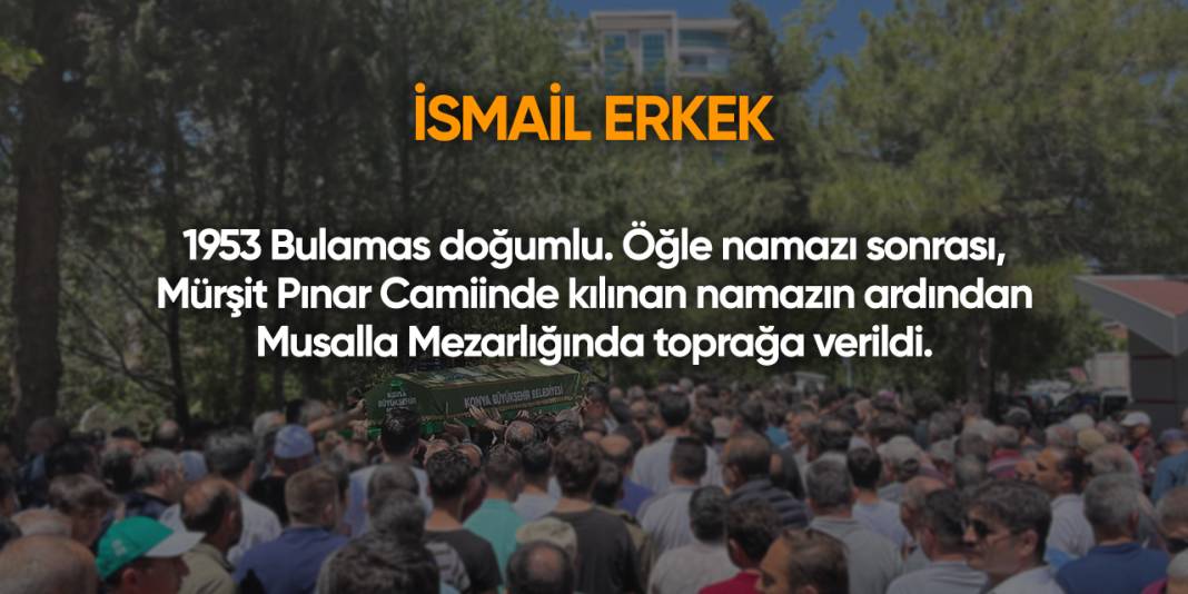 Bugün Konya’da hayatını kaybeden 11 kişi toprağa verildi. İşte 5 Temmuz Cumartesi günü vefat edenler ve cenaze bilgileri.