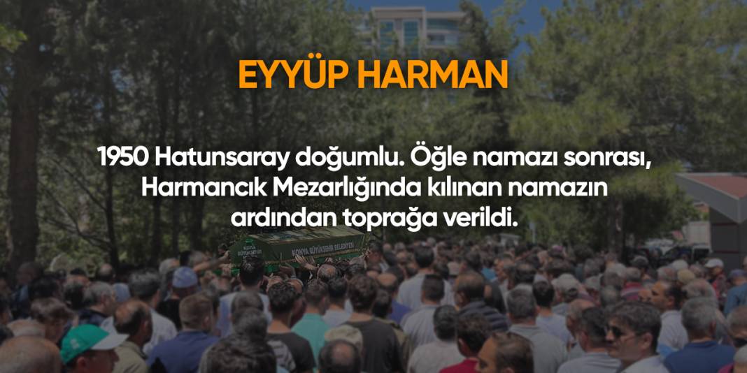Eyyüp Harman. 1950 Hatunsaray doğumlu. Öğle namazı sonrası, Harmancık Mezarlığında kılınan namazın ardından toprağa verildi.