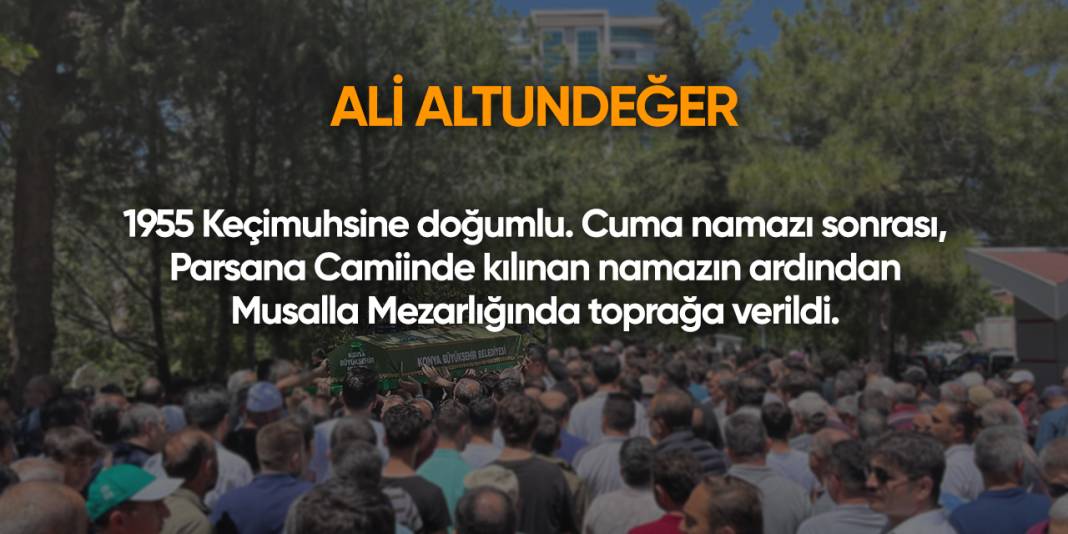 Bugün Konya’da hayatını kaybeden 15 kişi toprağa verildi. İşte 9 Mayıs Cuma günü vefat edenler ve cenaze bilgileri.
