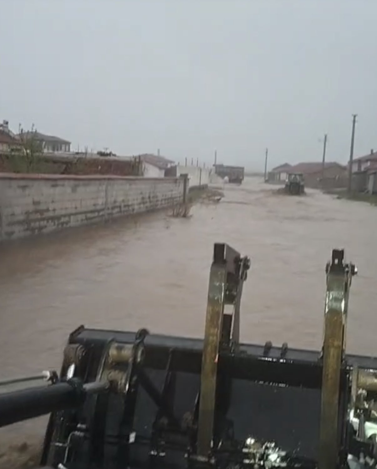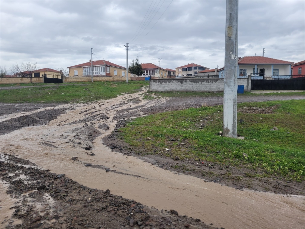 Konya'nın Yunak ilçesinde aniden bastıran şiddetli yağmur, Saray Mahallesi’nde sele yol açtı.