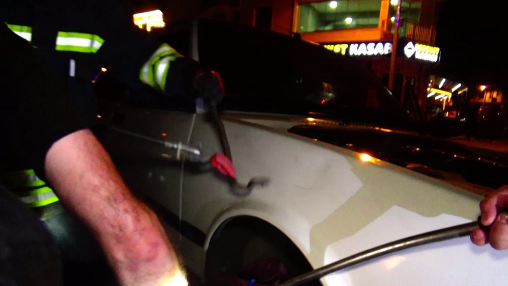 Kısa sürede olay yerine gelen itfaiye ekipleri, ilk olarak otomobilin çevresinde arama yaptı. Daha sonra jant kapağını dikkatlice söken ekipler, yılanı zarar vermeden bulunduğu yerden çıkardı.