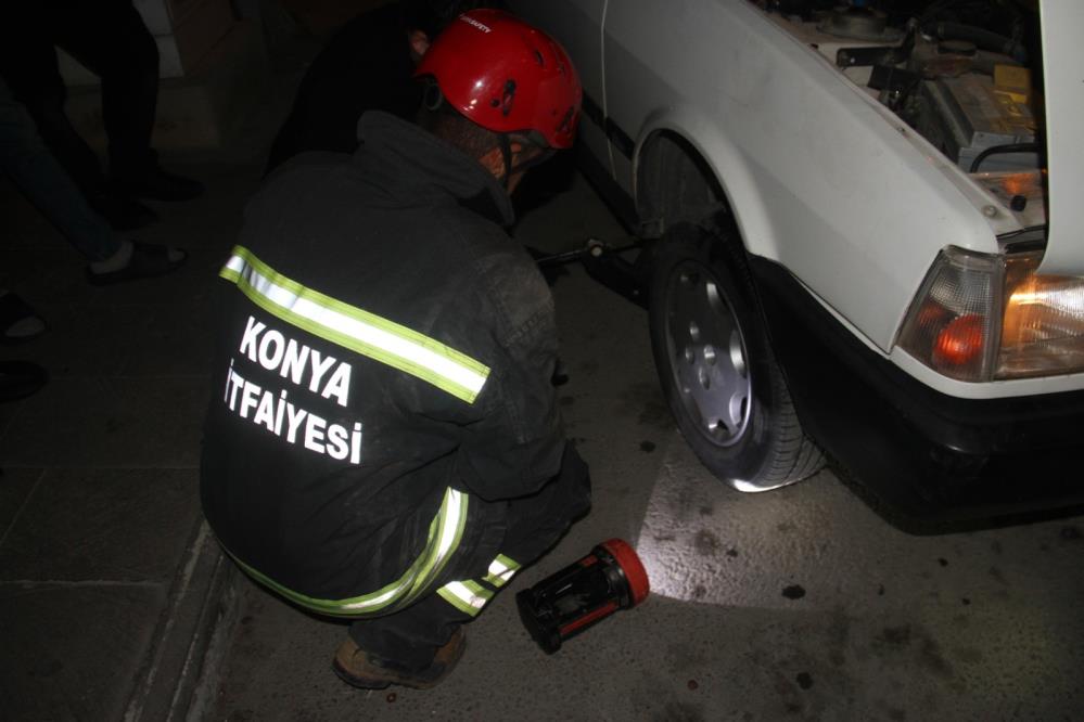 Konya’nın Beyşehir ilçesinde park halindeki bir otomobilin jantına giren yılan, çevrede paniğe neden oldu. Olay yerine çağrılan itfaiye ekipleri yılanı bulunduğu yerden çıkartarak doğaya saldı.