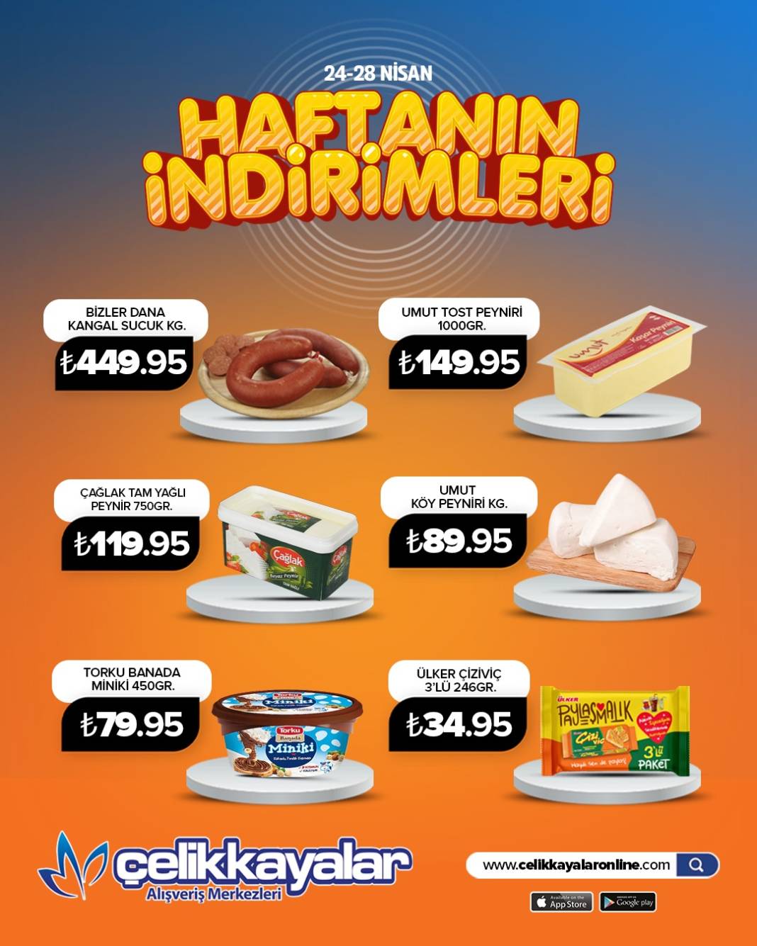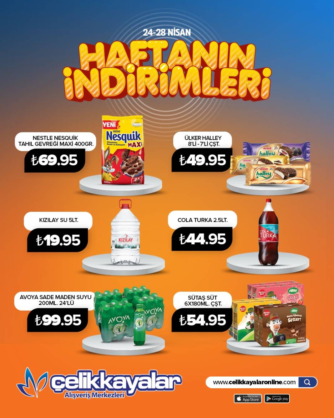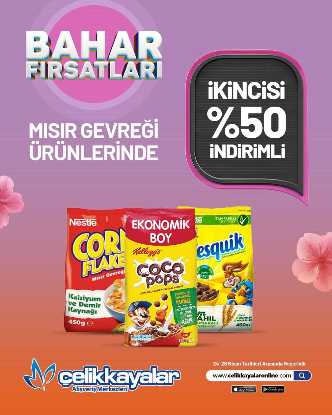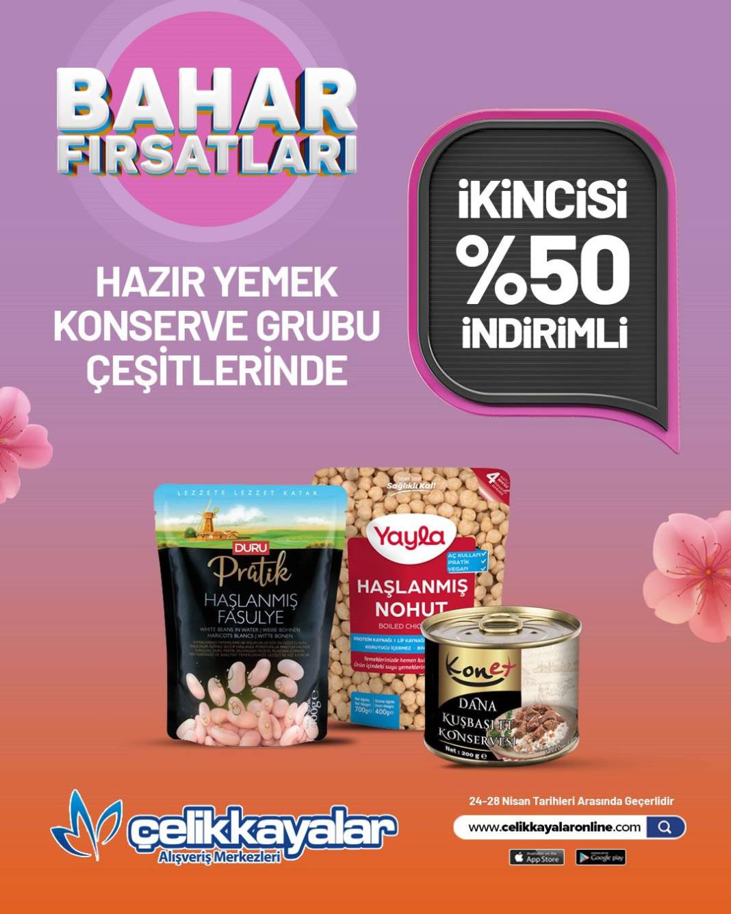 Konya Çelikkayalar Market, 24-28 Nisan tarihleri arasında onlarca üründe geçerli indirimlerle vatandaşların yüzünü güldürüyor. Hem temel gıda ürünlerinde hem de kişisel bakım ve temizlik gruplarında 2. üründe %50’ye varan indirimler dikkat çekiyor.