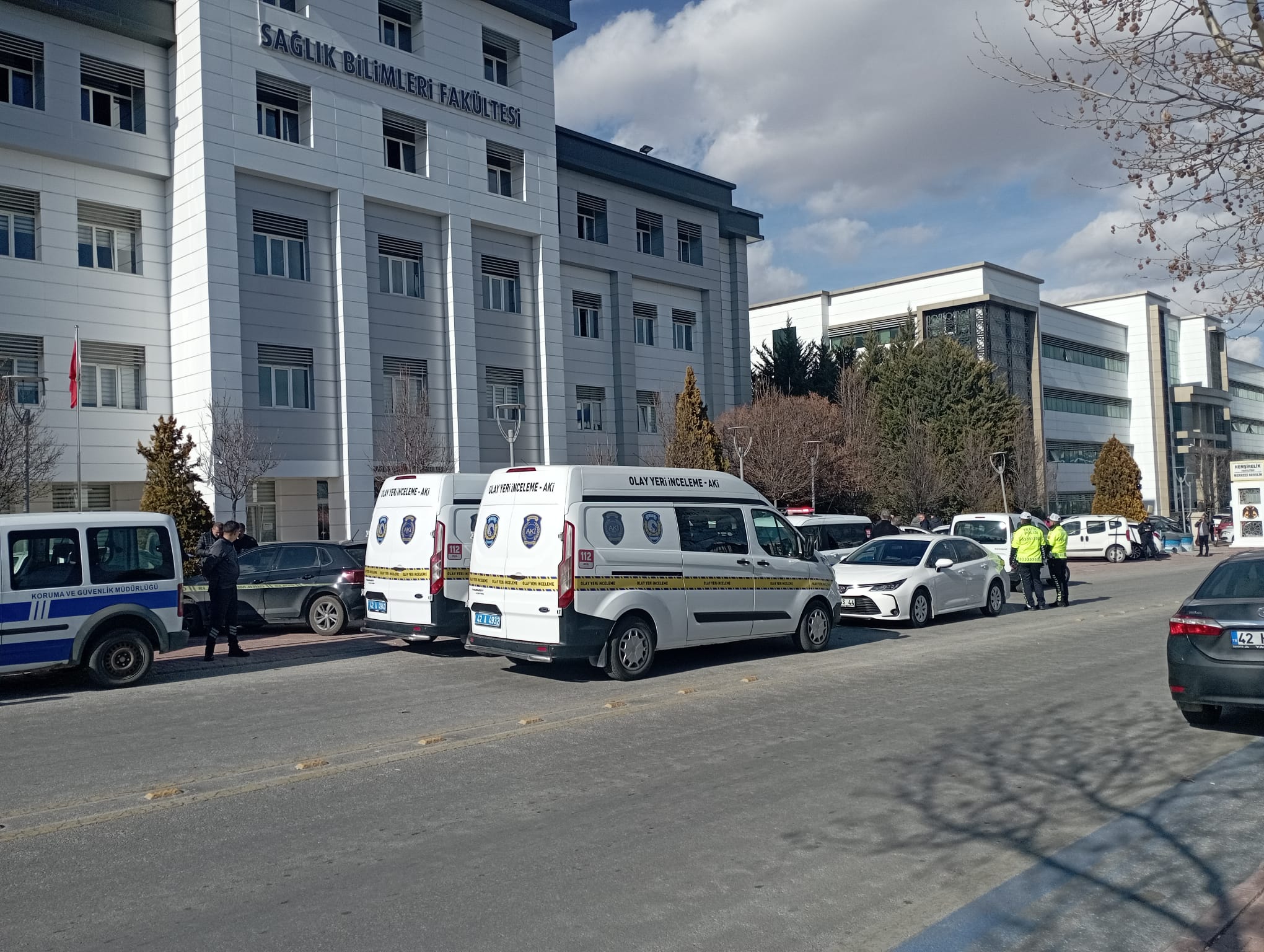 Olay, saat 14.30 sıralarında Konya'nın merkez Selçuklu İlçesindeki Selçuk Üniversitesi Kampüsü içinde yer alan Sağlık Bilimleri Fakültesinde yaşandı.