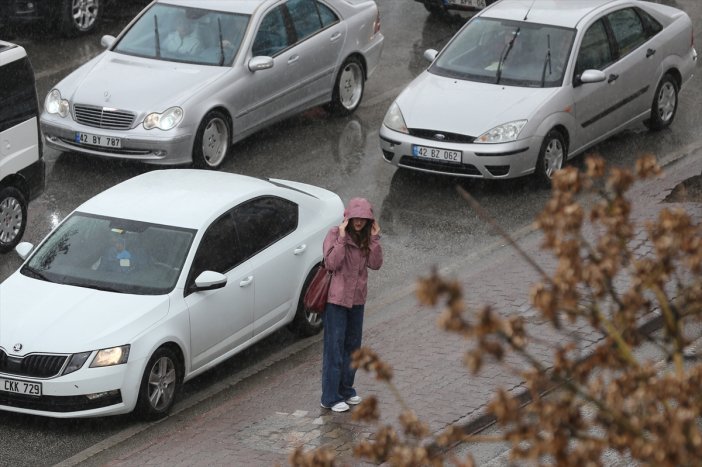 Konya’da üreticilerin dört gözle beklediği bahar yağışları devam ediyor. Konya şehir merkezinde öğle saatlerinde başlayan ve etkisini artıran yağış sonrası oluşan su birikintileri nedeniyle vatandaşlar ve araç sürücüleri zor anlar yaşadı.
