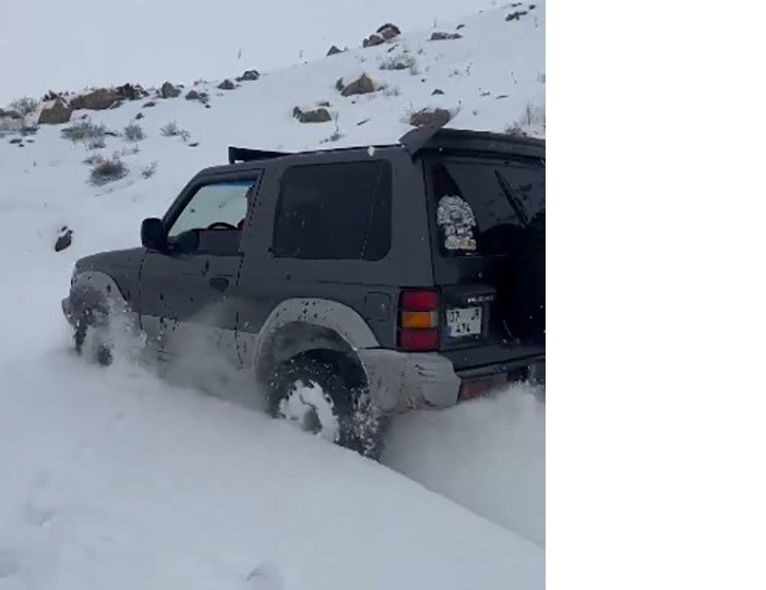 Yaklaşık 30 santimetre kalınlığa ulaşan karlı yollarda offroad araçları ile yol açmaya çalışan ekip, açtıkları yollarda offroad heyecanı yaşadı.