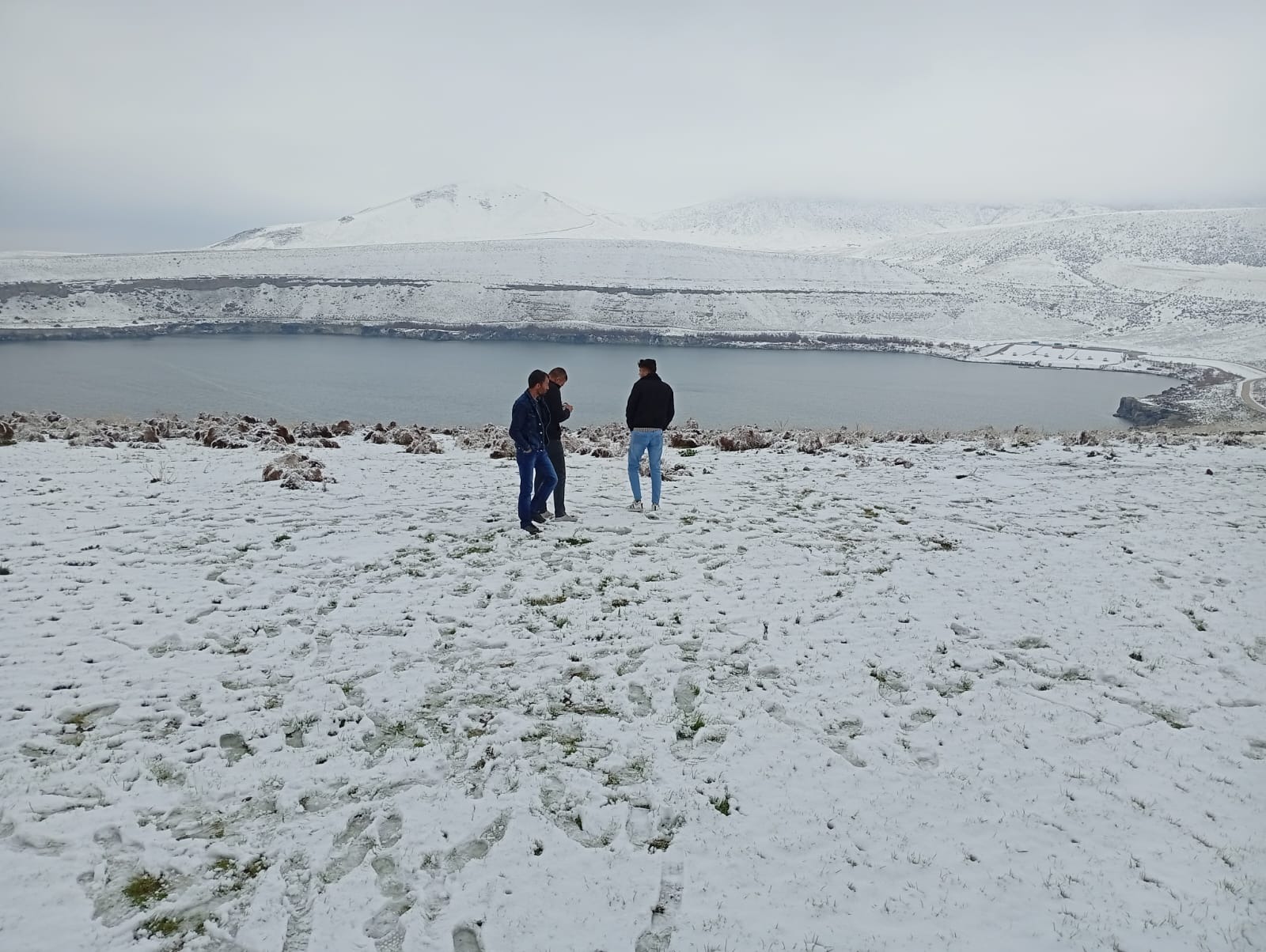 Yaz aylarında masmavi sularıyla görenleri kendine hayran bırakan göl, bu kez bahar ayında yağan karla birlikte adeta doğanın başka bir yüzünü gösterdi.