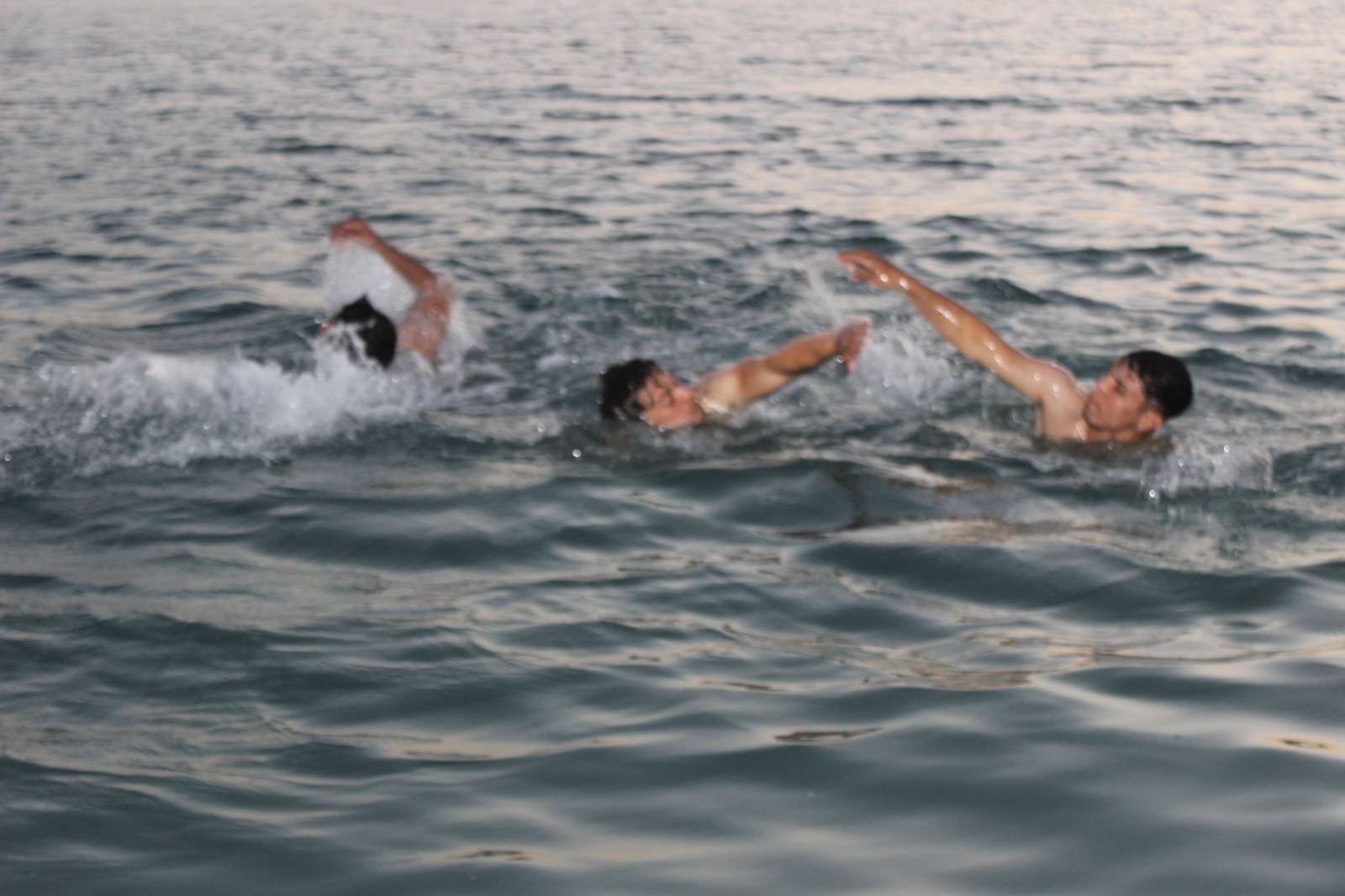 Gün batımında yüzen Halil İbrahim Ata, “Acıgöl’de yüzmek bir keyif. Ama gün batımında suya kulaç atmak anlatılmaz bir mutluluk” dedi.