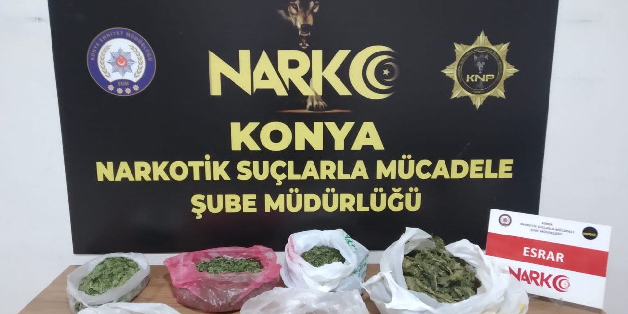 Konya polisinin düzenlediği iki farklı operasyonda 3 kişi gözaltına alındı, çok sayıda uyuşturucu madde ele geçirildi.