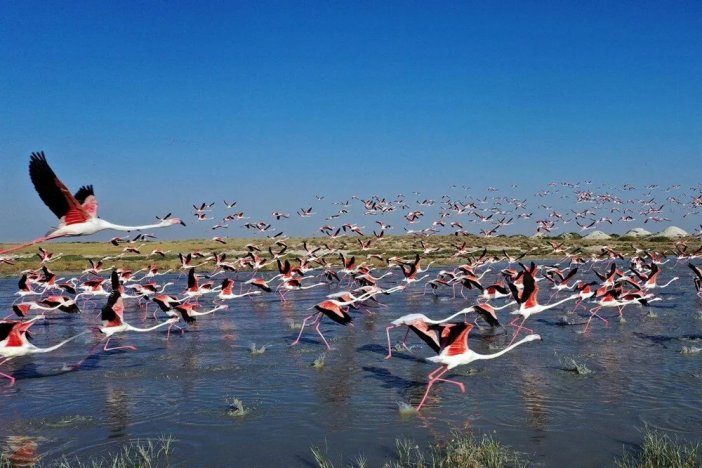 Özellikle flamingoların göz alıcı dansı, gölün eşsiz manzarasına ayrı bir güzellik katıyor.