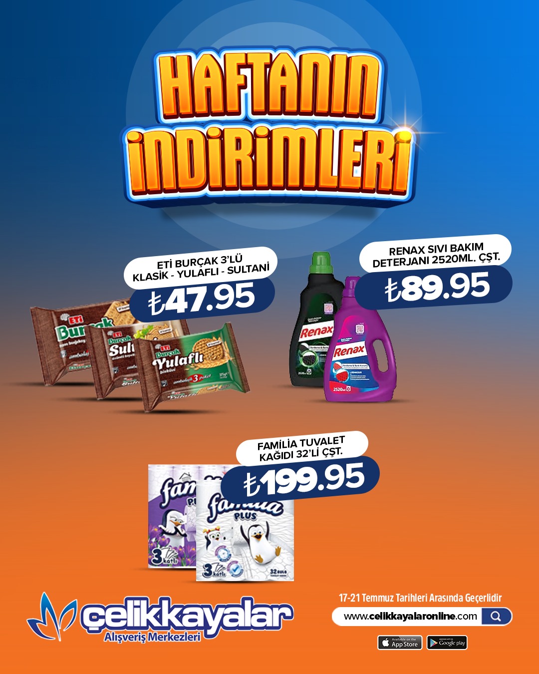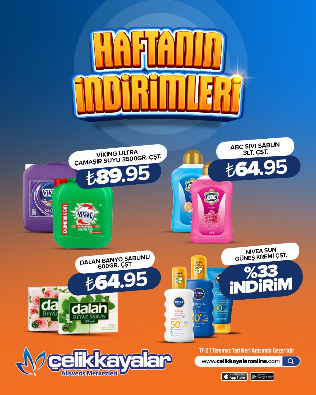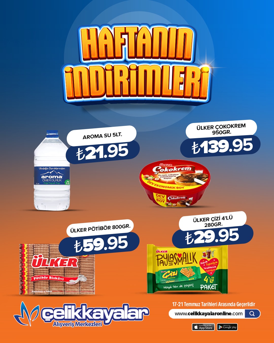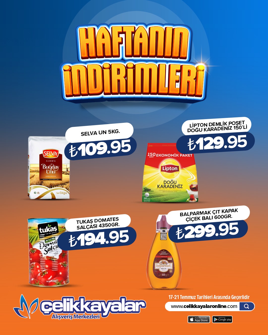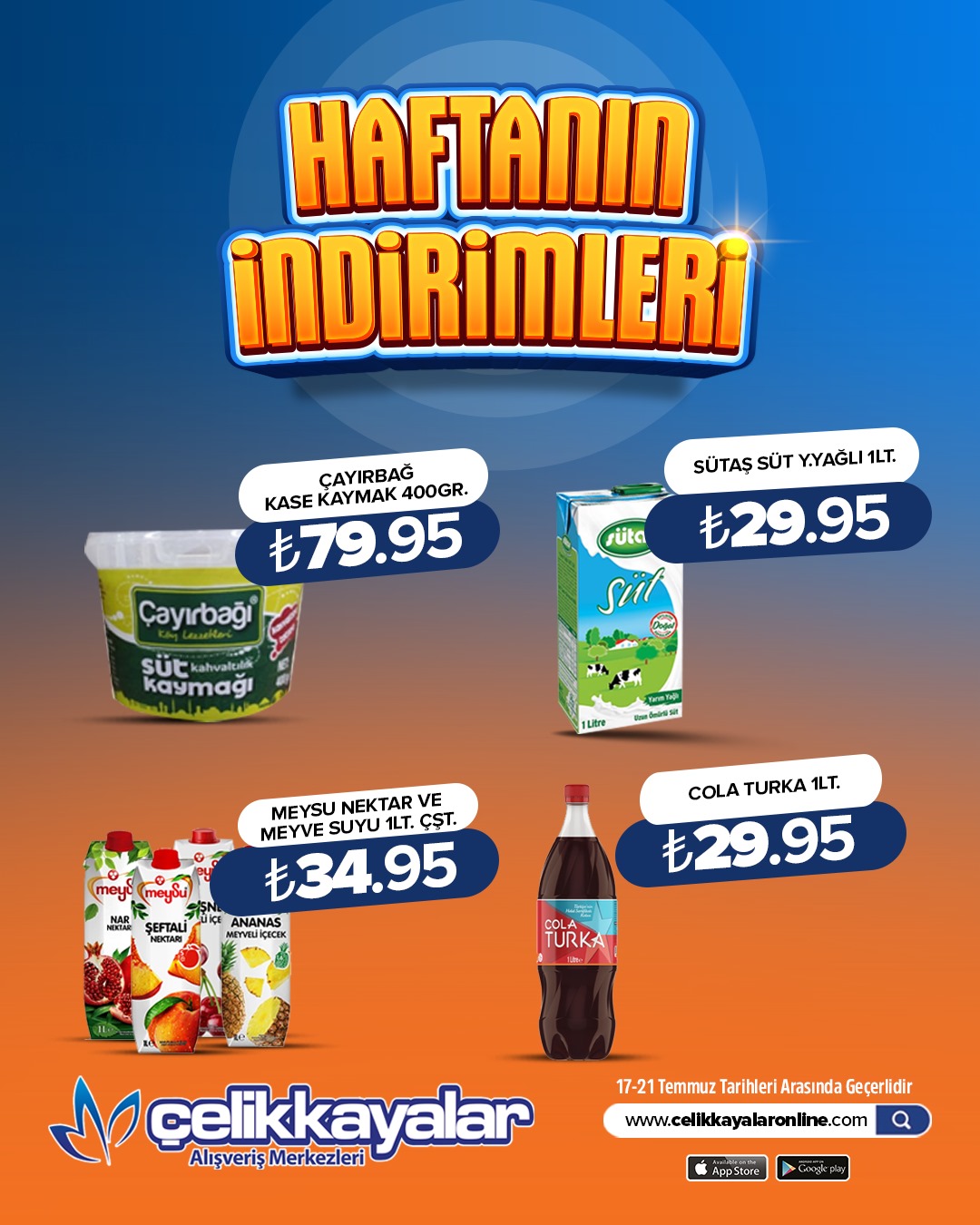 Konya’nın önde gelen zincir marketi Çelikkayalar, 21 Temmuz’a kadar geçerli olacak yeni haftalık indirim kampanyasını duyurdu. Gıdadan temizlik ürünlerine kadar onlarca üründe fiyatlar dikkat çekici düzeyde düştü.