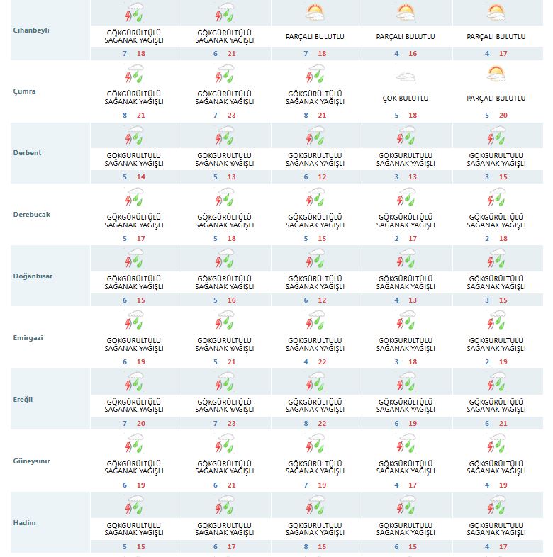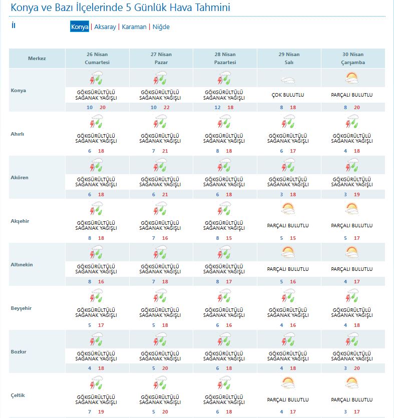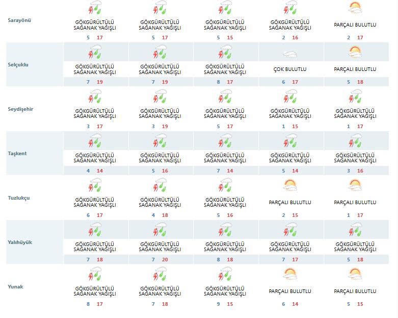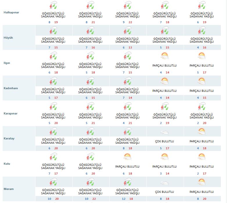 İşte ilçe ilçe Konya hava durumu tahmini: