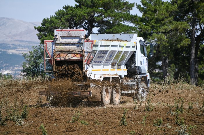 Topraktaki organik madde miktarını artırmayı amaçlayan uygulama ile kimyevi gübre kullanımının en aza indirilmesi hedefleniyor. Kamyon üzeri gübre dağıtım makinesinin kullanımı, traktör arkası kullanılan çeki tip gübre römorklarına göre güvenli ve yüksek kapasitesi ile daha avantajlı kullanım sağlıyor. 17 metreküp kapasitesi bulunan makine, Şubat-Nisan ve Temmuz-Kasım aylarında kullanılıyor.
