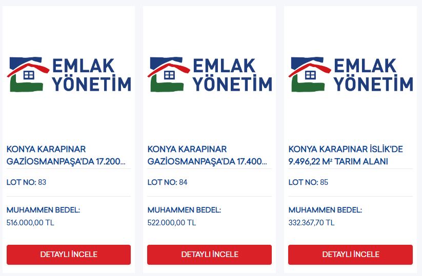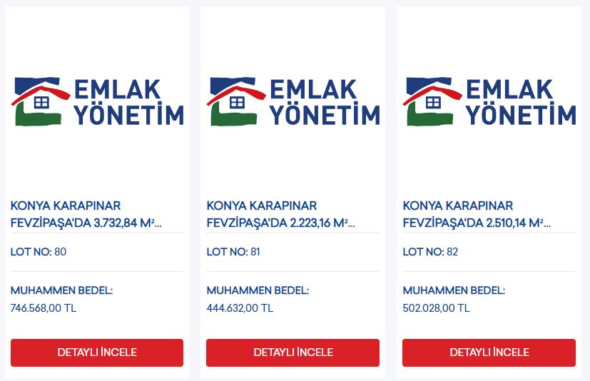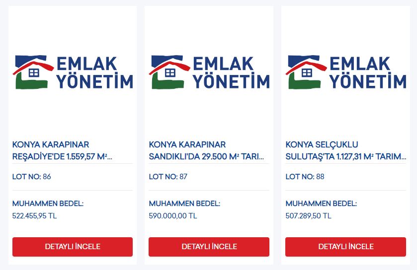 Konya’da satışa sunulan arsalar Selçuklu ve Karapınar ilçelerinde bulunuyor. Arsalar, konut ve tarım alanından oluşuyor.