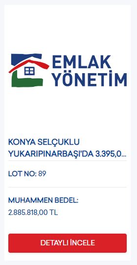 Çevre, Şehircilik ve İklim Değişikliği Bakanlığı Toplu Konut İdaresi Başkanlığı’ndan (TOKİ) yapılan açıklamaya göre; muhammen bedeli 5 milyar 606 milyon 263 bin 159 lira olan 12 milyon 860 bin 274 metrekare büyüklüğündeki, Adana, Adıyaman, Afyonkarahisar, Ağrı, Amasya, Ankara, Antalya, Ardahan, Aydın, Balıkesir, Bilecik, Bitlis, Bursa, Çorum, Denizli, Diyarbakır, Düzce, Erzincan, Eskişehir, Gaziantep, Giresun, Gümüşhane, Hakkari, Isparta, İstanbul, İzmir, Karabük, Kastamonu, Kayseri, Kırşehir, Kocaeli, Konya, Kütahya, Manisa, Mardin, Mersin, Muğla, Muş, Nevşehir, Niğde, Sakarya, Sivas, Şanlıurfa, Şırnak, Tekirdağ, Trabzon, Tunceli, Uşak, Van, Yalova ve Yozgat'ta bulunan 510 arsa, açık artırmayla satılacak.