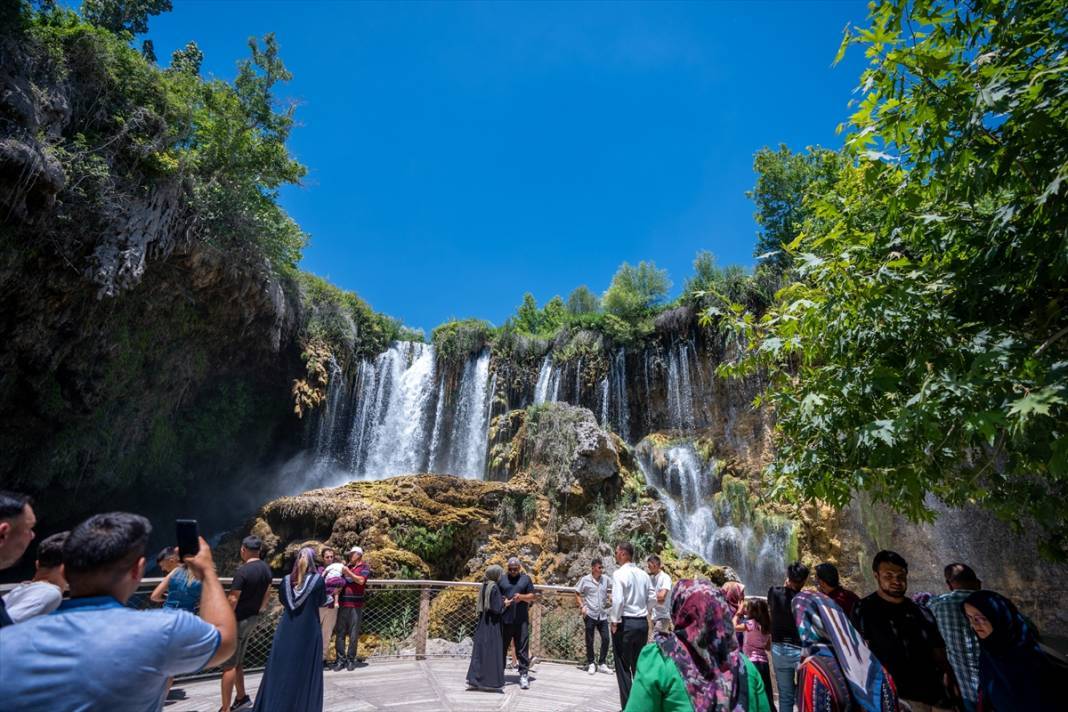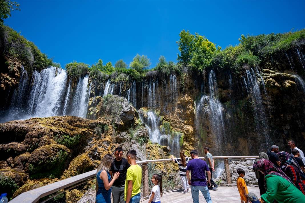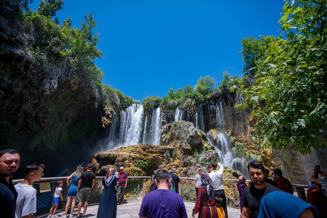 Doğayla baş başa kalmak, serin sularda vakit geçirmek ve eşsiz manzaralar eşliğinde yürüyüş yapmak isteyen binlerce kişi şelaleye yöneldi.